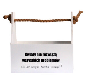 Skrzynka ozdobna na prezenty z napisem KWIATY NIE ROZWIĄŻĄ WSZYSTKICH PROBLEMÓW